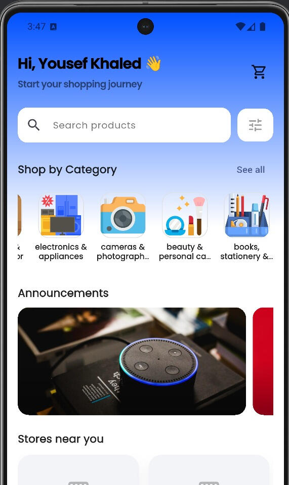 Explore nearby stores and browse products across different categories.